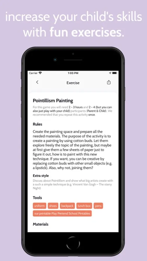 • Domain-specific exercises for each topic of the app so that you can improve your child's health in specific areas