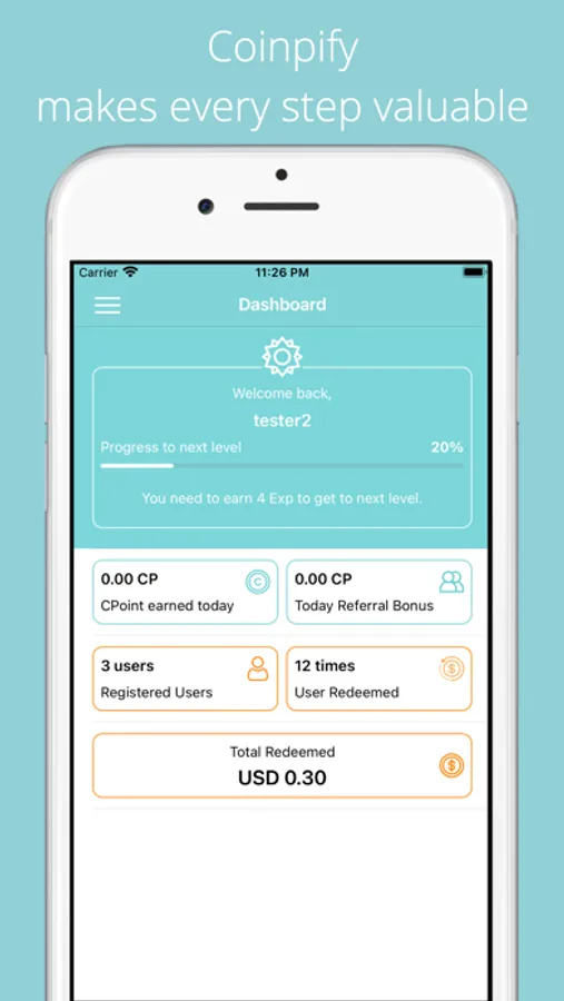 Coinpify converts your steps into point called CPoint. You can then use them to redeem rewards. Just walk 100 steps everyday. Free for register. Try it now.