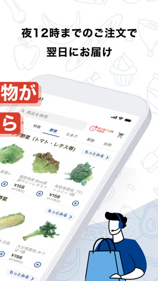 - フレスタの新鮮な食材を前日24時までの注文で最短翌日にご自宅へお届けします(配達日は指定可)。