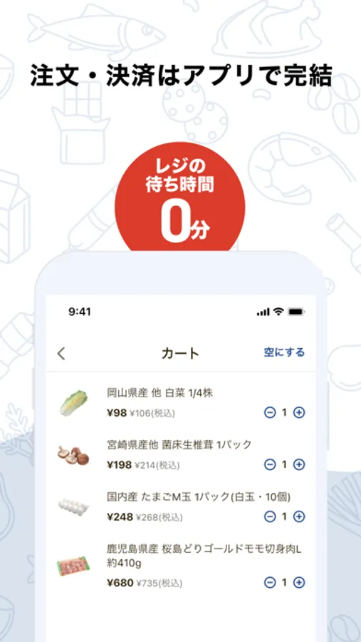 2. 売場から欲しい商品を選び、カート画面からお支払いへ進む