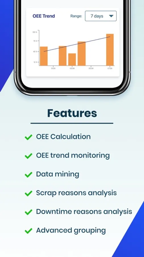 Thanks to the OEE Tools mobile application, you can access the production data flowing from the production hall and monitor it on your phone. Depending on configuration and data availability, the information you can get is: