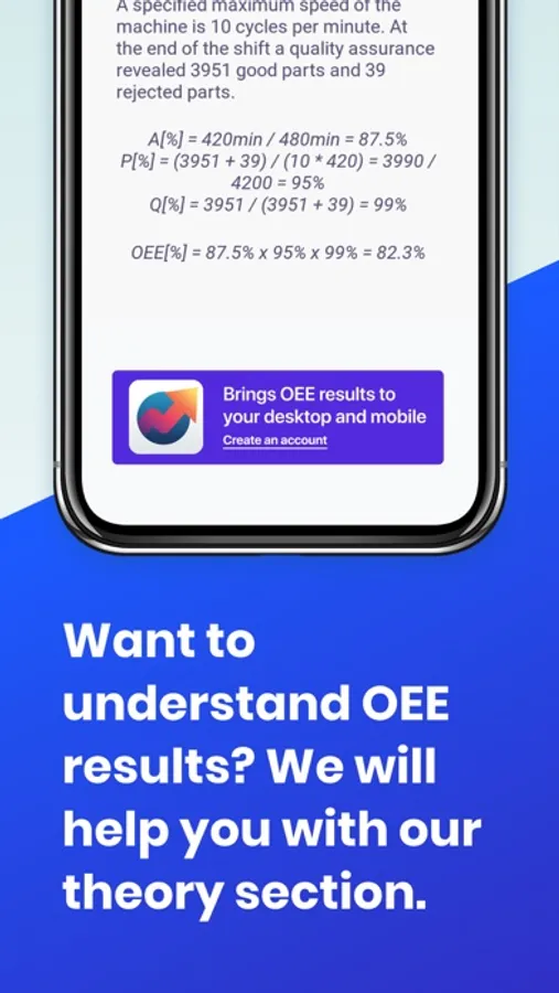 From version 1.1 the application provides features for users that do not have an account. You can read a theory that stands behind the OEE metric and calculate OEE using a simple and easy to use calculator.