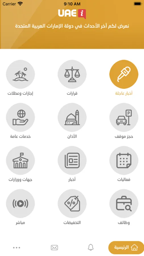 تطبيق محمول إعلامي ومنتج يعرض أحدث الإعلانات للقرارات والأحداث في دولة الإمارات العربية المتحدة مع إمكانية تتبع كل منها حسب الاهتمام.
