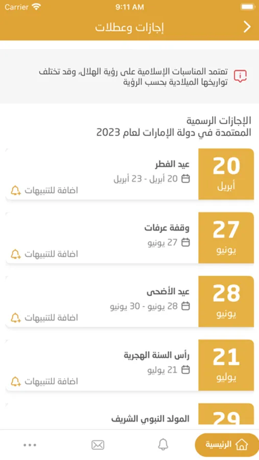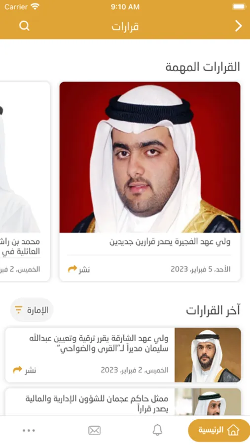 Informative & productive mobile app displaying latest announcements for decisions and events in the UAE with the ability to track each as per interest.