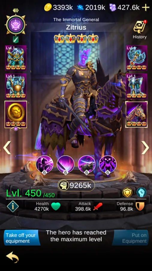 UPGRADE HERO LEVEL: Power up your heroes to Level 450 – the maximum level that will increase their core attributes such as health, attack, damage, and unlock new combat abilities.