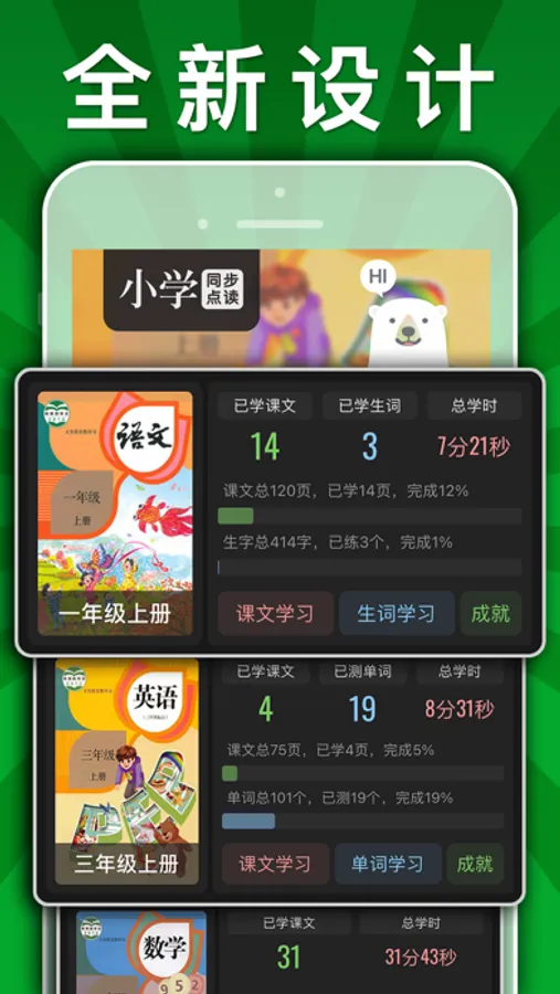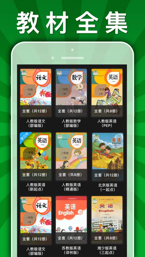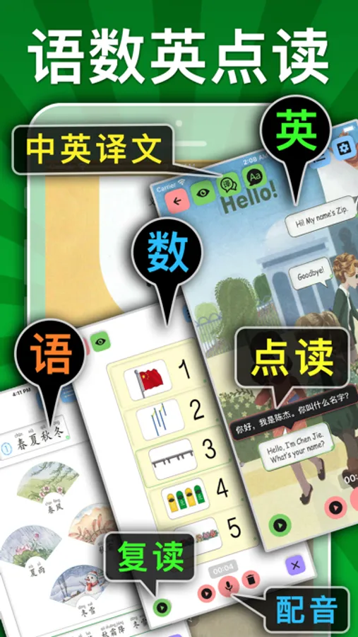 小学语文、数学、英语同步课文点读、趣配音,帮助小学生有效提高语文、数学、英语三大学科能力。
