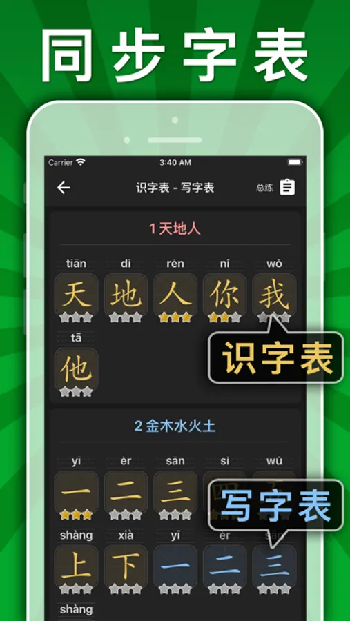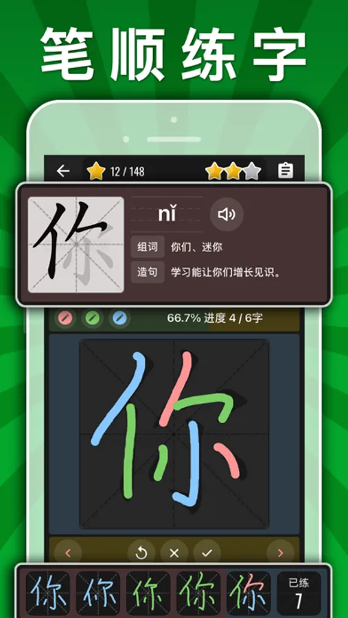 生字训练:手写板,拼音练习、笔顺笔画书写