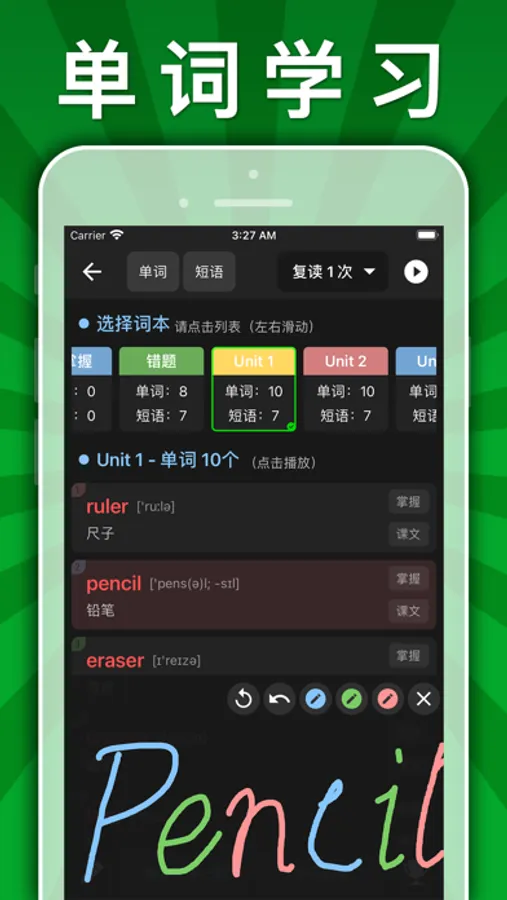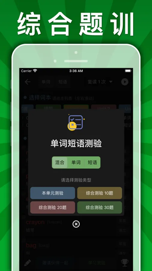 词语测验:记录学习单词短语,图标统计,让进步有个见证!