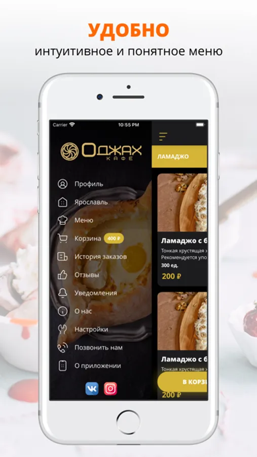 Воспользуйтесь удобным приложением для заказа еды из кафе «ОДЖАХ». Готовим и доставляем блюда кавказской кухни по г. Ярославль.