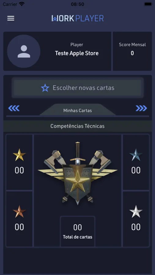 Como todo jogo, existem emblemas que identificam o nível do jogador, por isso no WorkPlayer foi criado o conceito das cartas. As cartas ficam registradas no perfil do usuário e indicam o nível de habilidades e de conhecimento em determinada área ou tecnologia. Elas são úteis tanto para gratificar quanto para estimular o desejo do usuário de obter um nível de “jogo” mais desafiador ao longo do tempo. Também é possível navegar no perfil de outros usuários para verificar quais cartas ele possui.