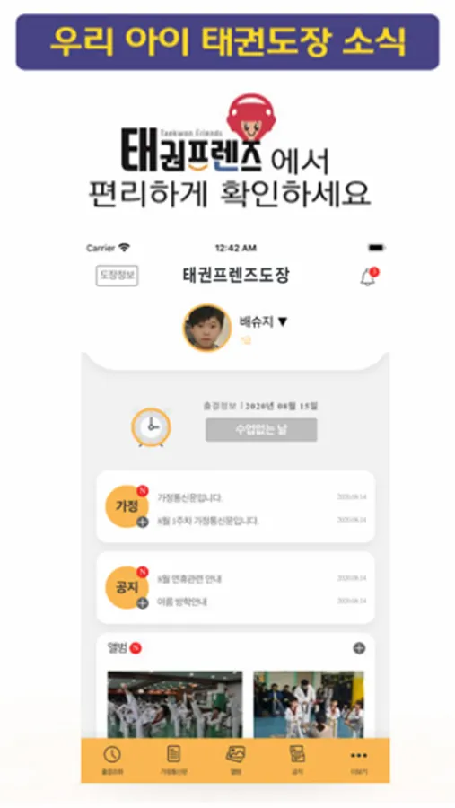 수련생 부모님들이 도장내 소식 및 아이들의 생활을 손쉽게 확인할 수 있는 수련생부모님APP을 제공합니다.