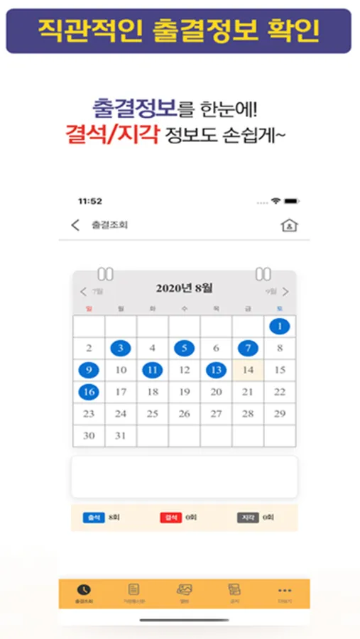 → 수련생의 일일 출결정보 및 월간 현황 확인.