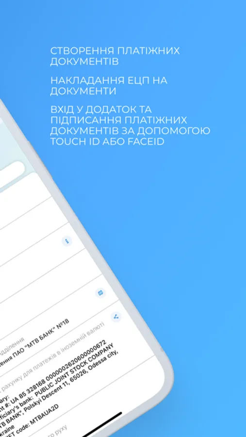 - Enter the app and sign payment documents using biometrics (Touch ID).