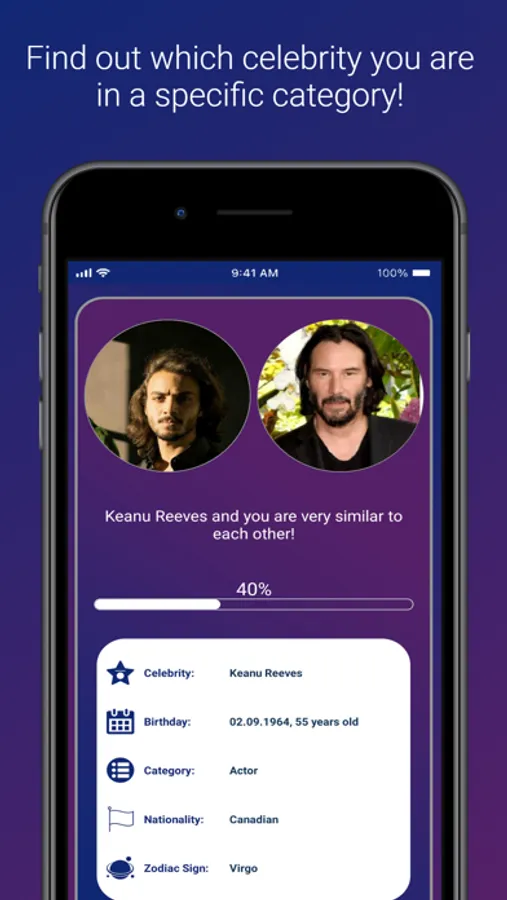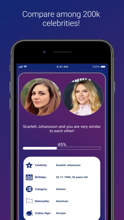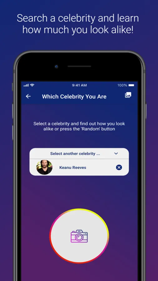 Take a selfie and leave the rest to the “Which Celebrity” app - It will find the best result by comparing your photo with celebrities.