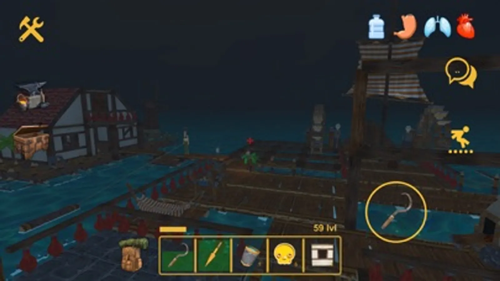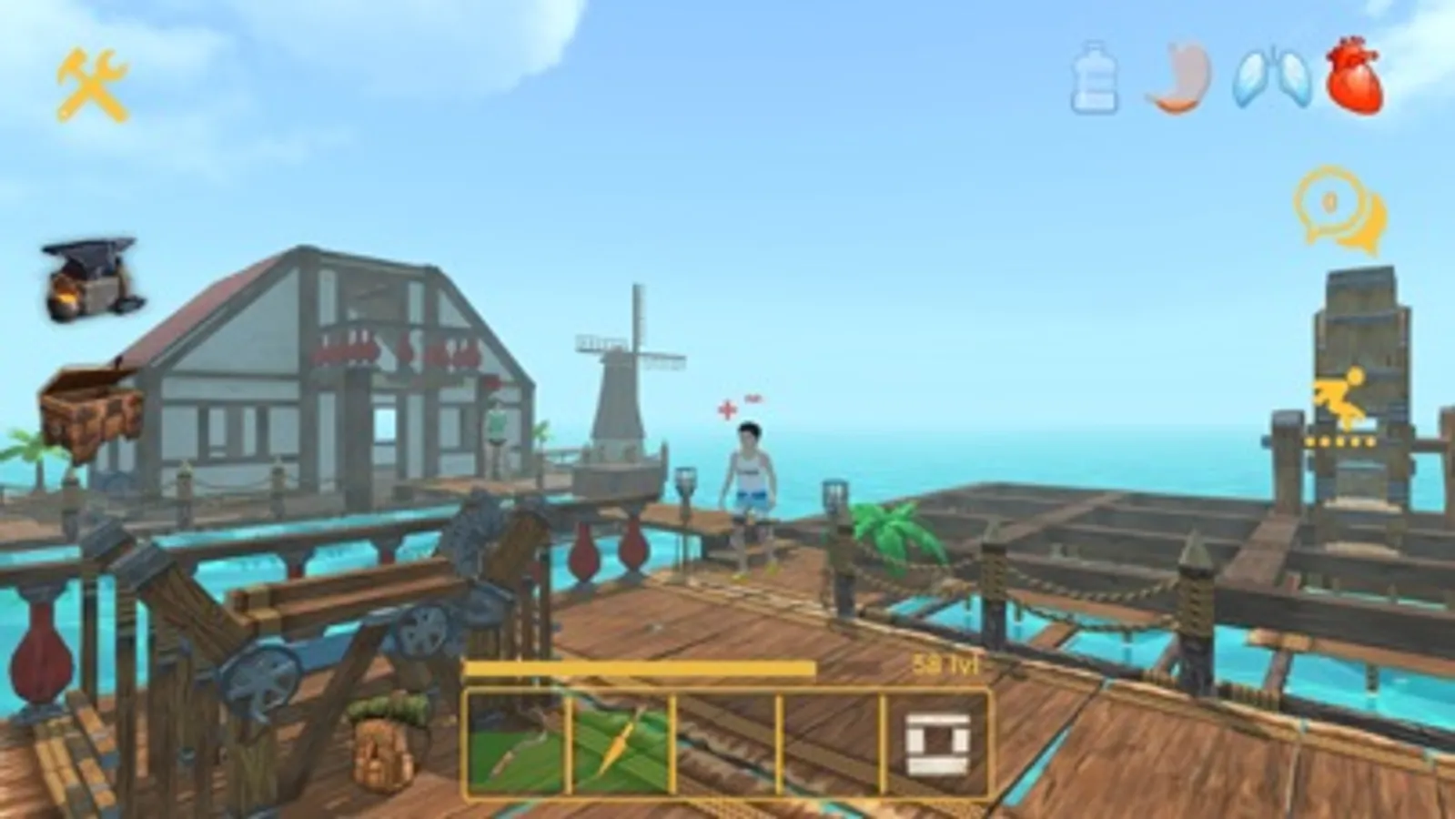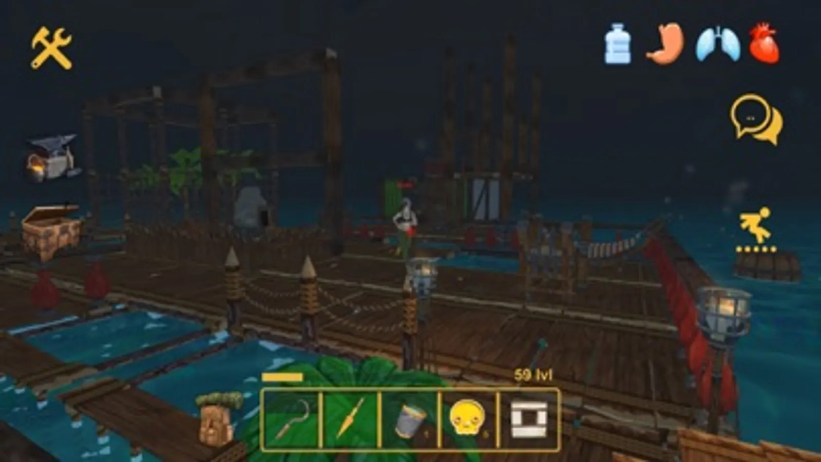 Catch fish, grow vegetables and get water — do everything to survive! Create building materials, clothes, weapons, chests and other things necessary for survival. Make auxiliary tools that will speed up the process of obtaining resources.
