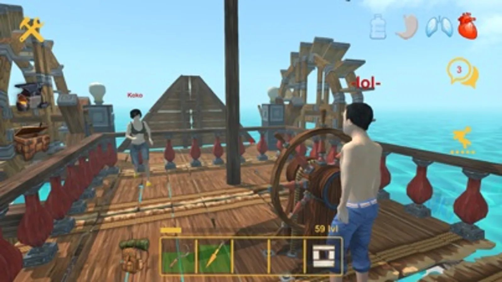 In our game you can play with your friends online and build a raft together.
