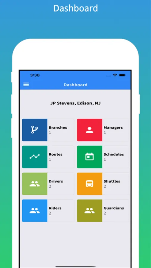 1. Dashboard view to manage all drivers, shuttles, branches & trips.