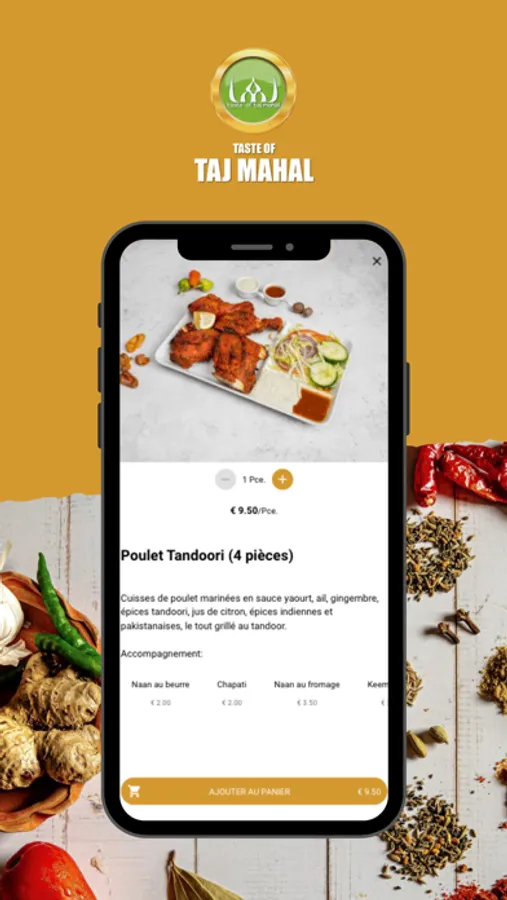 Où que vous soyez, avec l'application Taste of Taj Mahal, vous pouvez commander sans souci parmi la vaste gamm.