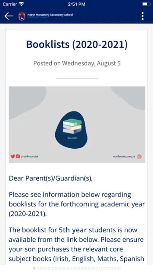 The North Monastery Secondary School App gives parents a single point of contact to receive news, updates, and notifications from the school. The calendar allows you to view and copy school events to your personal calendar. The app also provides quick access to the school's social media accounts and direct contact information.