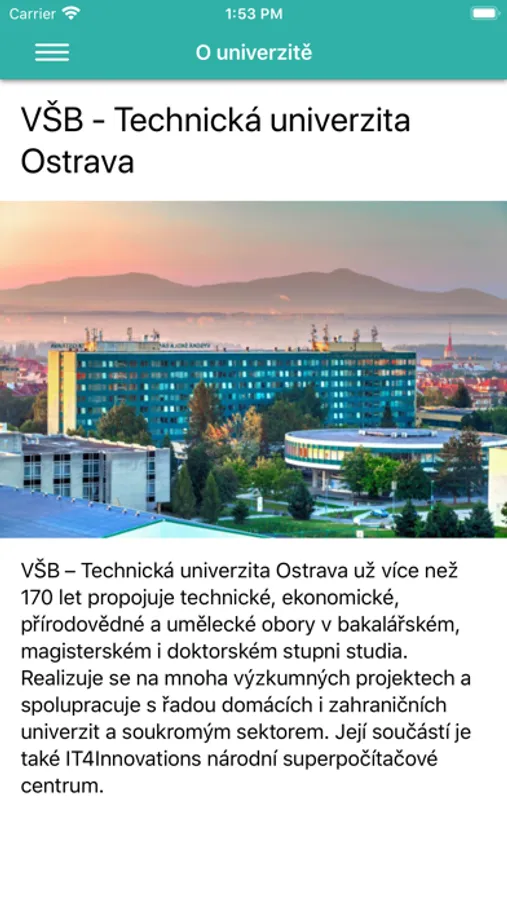 V aplikaci naleznete rozvrh přihlášeného studenta, zobrazení polohy místností na mapě, kontakty na pedagogy a pracoviště nebo novinky z univerzity. V aplikaci také můžete vyplnit i přihlášku ke studiu.