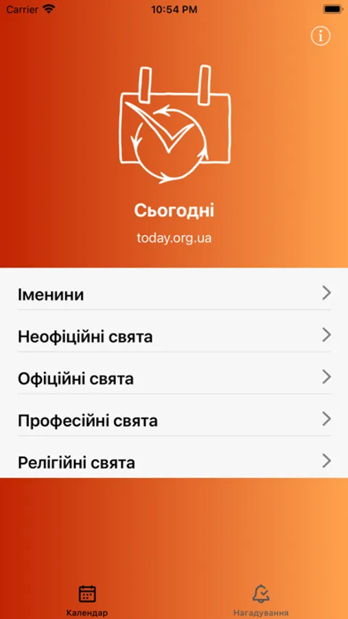 Календар усіх свят та іменин в одному додатку. Державні, професійні, неофіційні і релігійні свята та іменини.