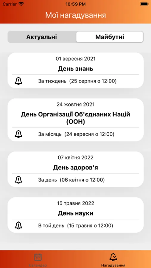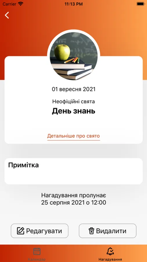 - Можливість створювати примітки до кожного нагадування
