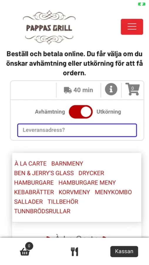 Du kan beställa online med olika betalningsalternativ. Dra fördel av det rika menyinnehållet och attraktiva kampanjer. Du kan beställa online pizza, hamburgare och sallad i Bandhagen regionen.