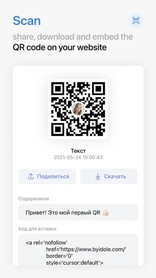 Just paste the link or fill in the fields. You can change the standard design and arrange the QR code in your own unique style: choose the layout and color of the image, upload a logo or photo, add text. Super code scanner - just point the camera at the code and we'll show you which action is right for you to interact with.