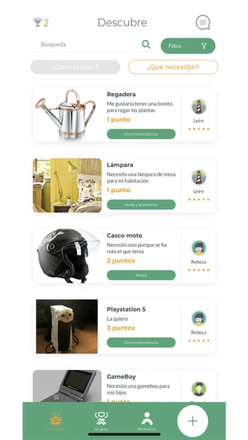 Con esta App puedes intercambiar artículos que tu necesites por artículos de otros usuarios que ya no necesiten, dando así una segunda vida/oportunidad a estos artículos y por consiguiente disminuyendo el impacto medioambiental que causaría si se tirase a la basura.