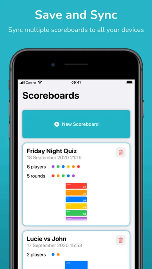 Save multiple scoreboards and come back to them later on any of your devices.