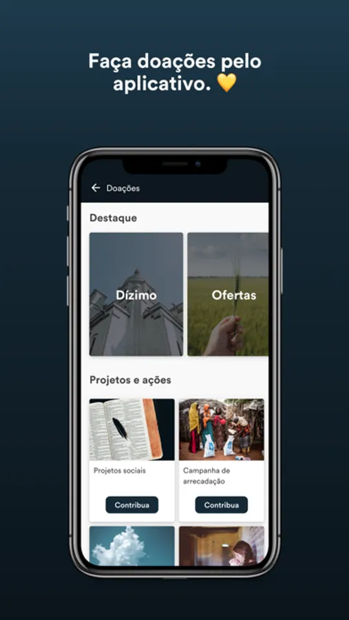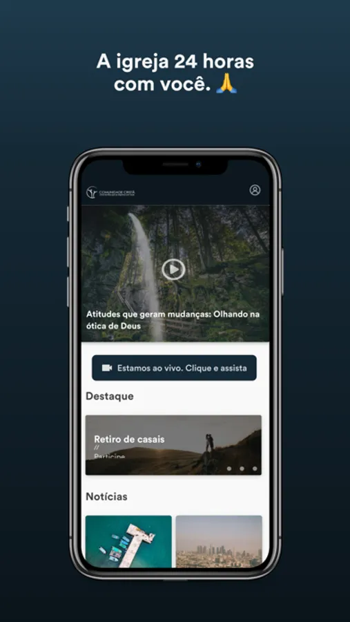 - Conecte-se com a igreja através dos grupos de interesse, receba conteúdo direcionado e obtenha sua carteirinha exclusiva.