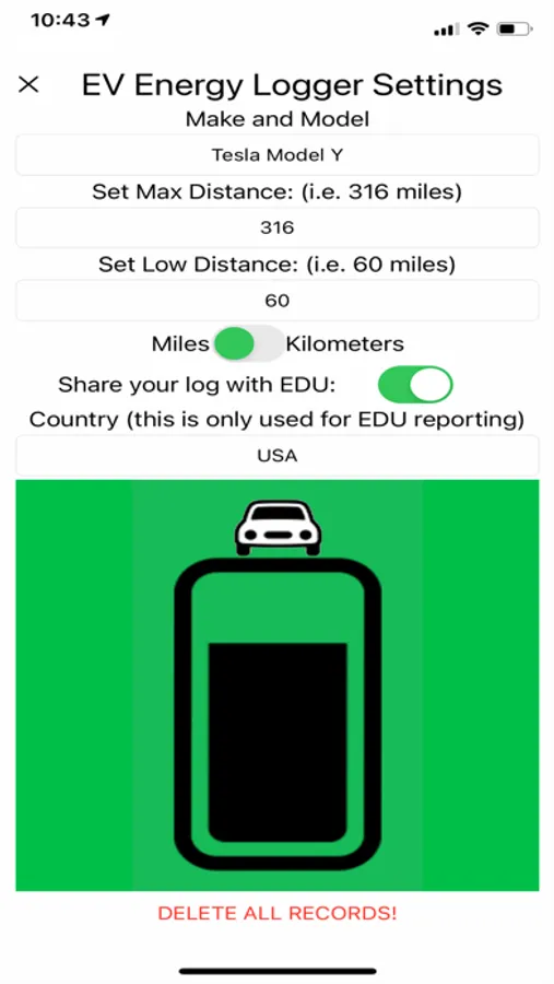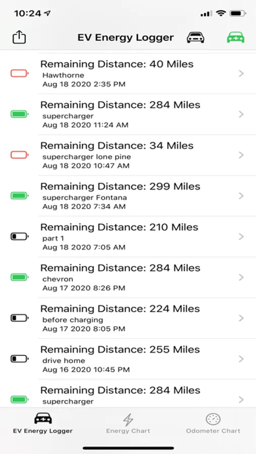 Track your EV energy usage with EV Energy Logger. See how much you're spending to charge your vehicle, view charts of your energy usage and odometer, set your max distance to see your battery percentage and share your log as a CSV file.