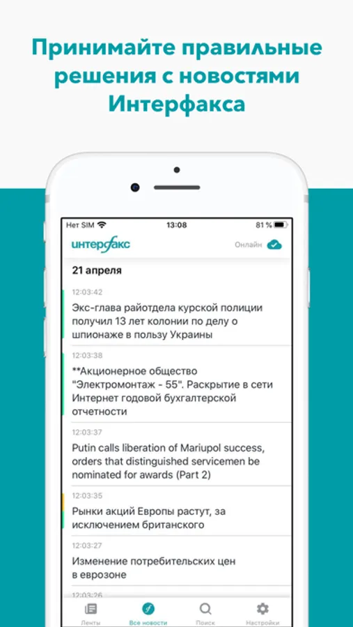 Приложение предоставляет профессиональным пользователям - репортерам, аналитикам, трейдерам и руководителям полный доступ к лентам "Интерфакса", 30-летний архив и широкие возможности настройки собственных лент и push-уведомлений для того, чтобы вовремя принимать решения.