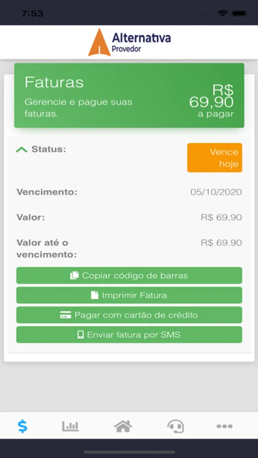 Aplicativo feito para consultar faturas,pagamentos via cartão de crédito, verificar consumo mensal de internet.