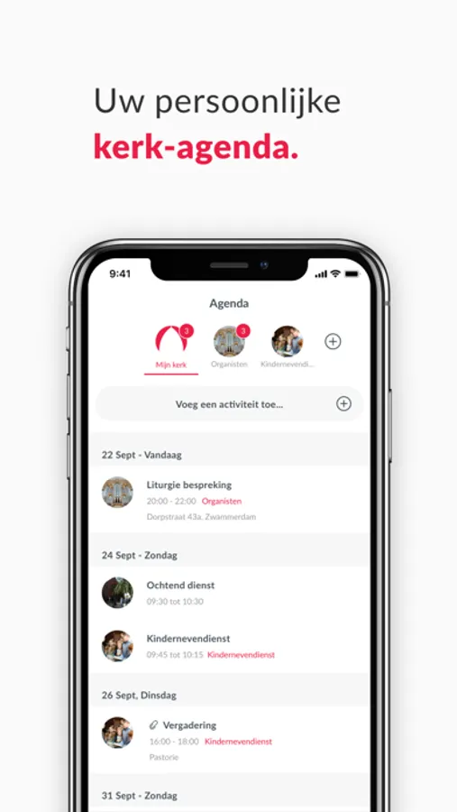 Dankzij onze unieke groepenstructuur helpen wij kerken beter te communiceren. Met de hele gemeenschap, maar ook onderling. U kunt zelf groepen toevoegen en mensen daarvoor uitnodigen. Een slimme timeline zorgt er voor dat iedere gebruiker persoonlijke en relevante informatie ziet.