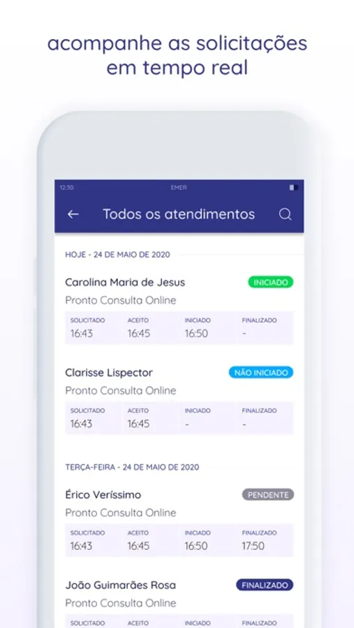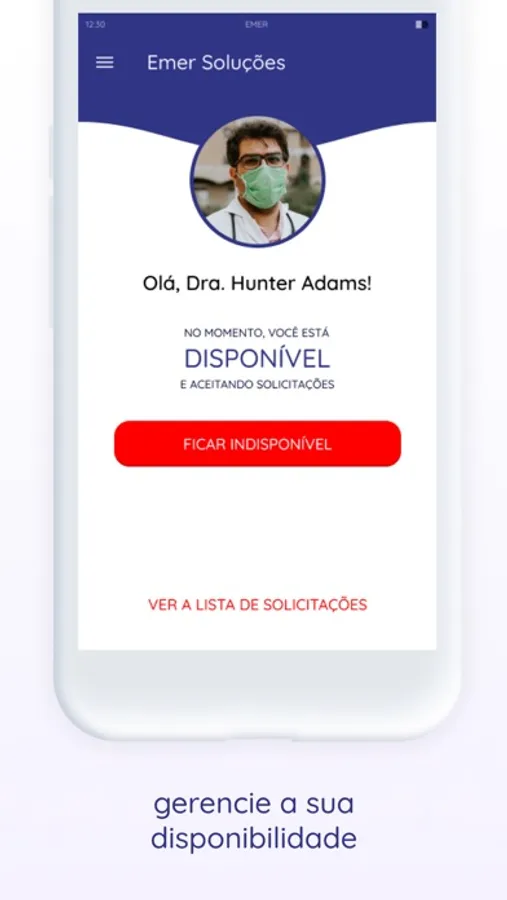 O aplicativo Emer Soluções Médicas permite que profissionais da saúde parceiros da Emer recebam as solicitações de atendimento dos pacientes.
