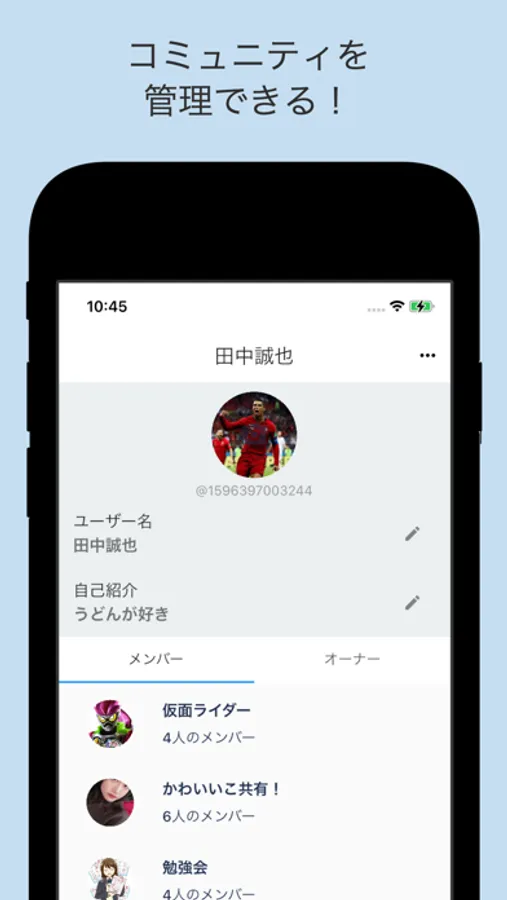 自分が属しているコミュニティや自分がオーナーになっているコミュニティを管理できます。
