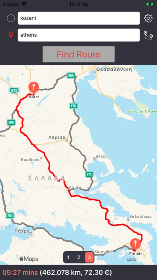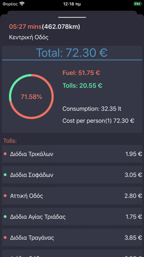 Travel cost calculator, fuel cost, consumption, toll cost (Greece) , driving directions and alternative routes, the expenses for each of your passengers, the distance and the time needed to complete the trip.
