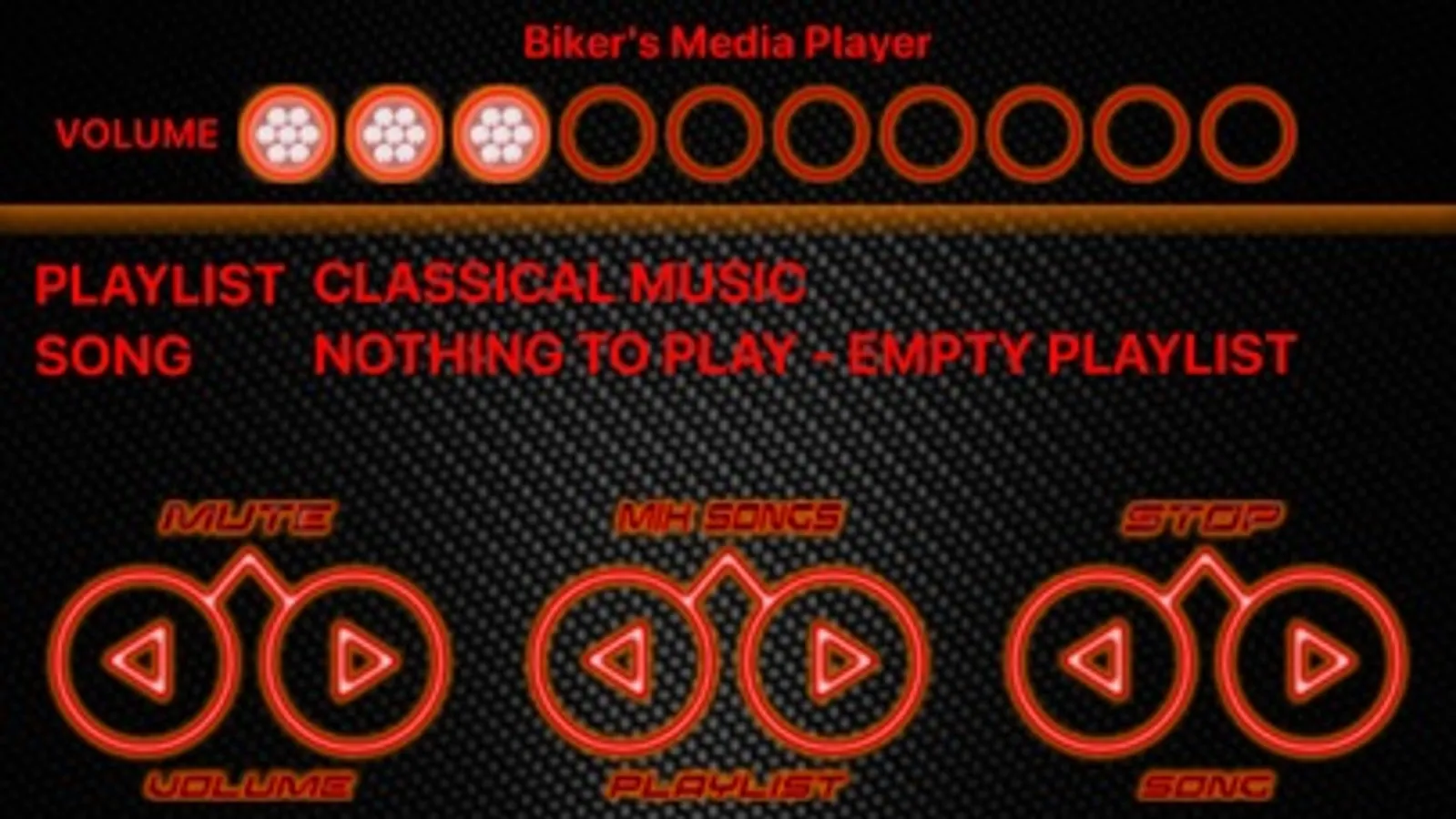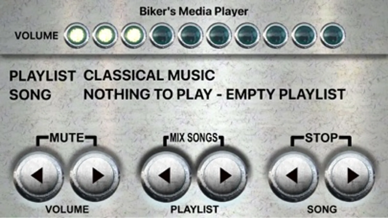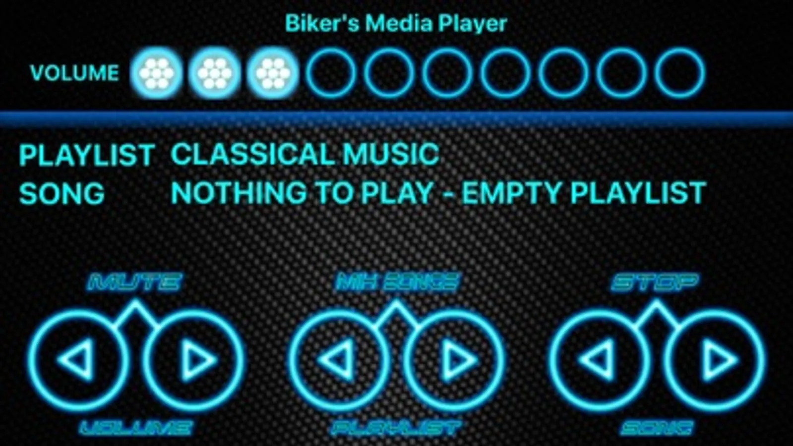 Con questa app ho cercato di semplificare la vita a chi come me ha l'iphone ancorato al manubrio e vuole avere dei pulsanti comodi e grandi per poter cambiare velocemente playlist e canzone e regolare il volume.