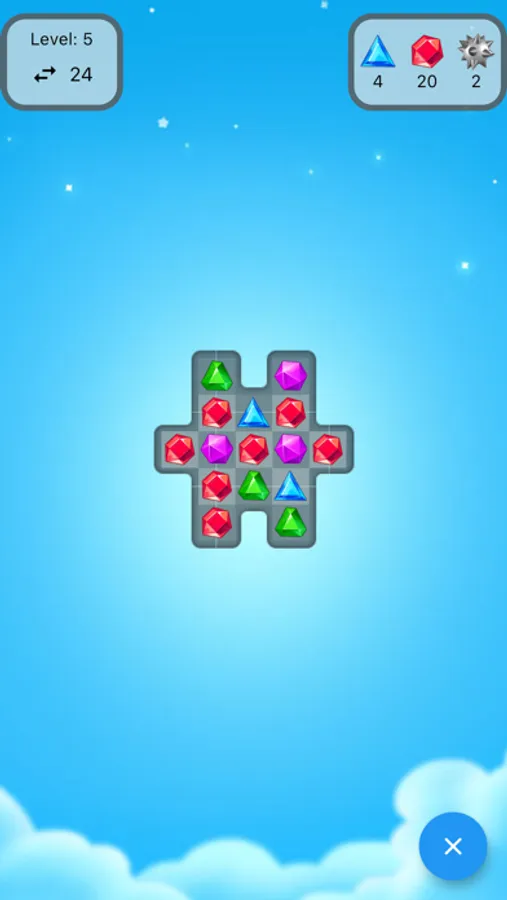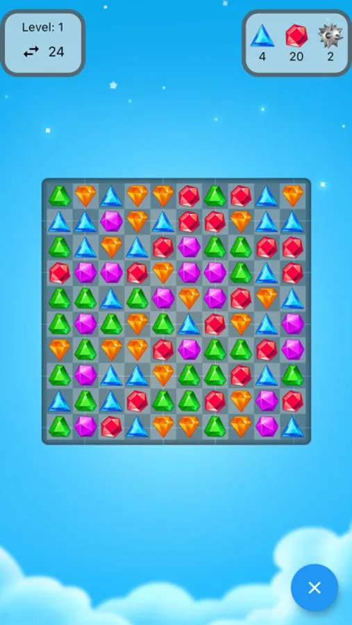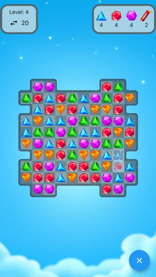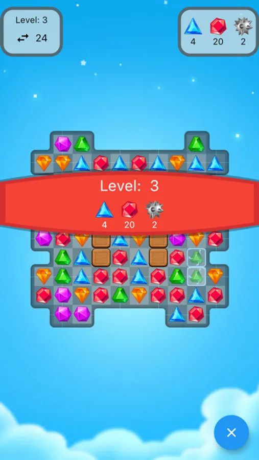- Подбери 3 или более кристаллов одного цвета, чтобы проходить уровень