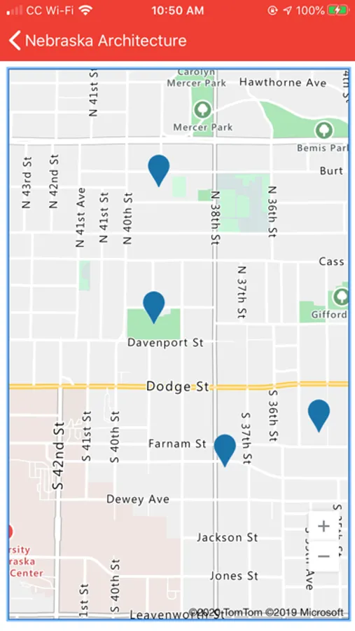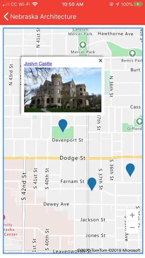 The app explores features of the buildings, including the architect, year it was built and an interactive map to its location.