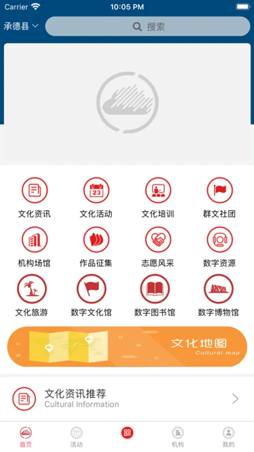 文化云-一款聚焦文化领域,提供公共文化生活服务和文化消费的文化互联网平台,展示承德县公共服务建设的一个公益性平台,展示了包括承德的公共文化活动,各类文化场馆门户子平台,文化相关资讯,志愿活动和志愿者风采,网上数字资源等信息,包含市民互动,线上报名等交互性功能,包含大量的非遗资源,是承德县公共文化服务领域的一张名片。