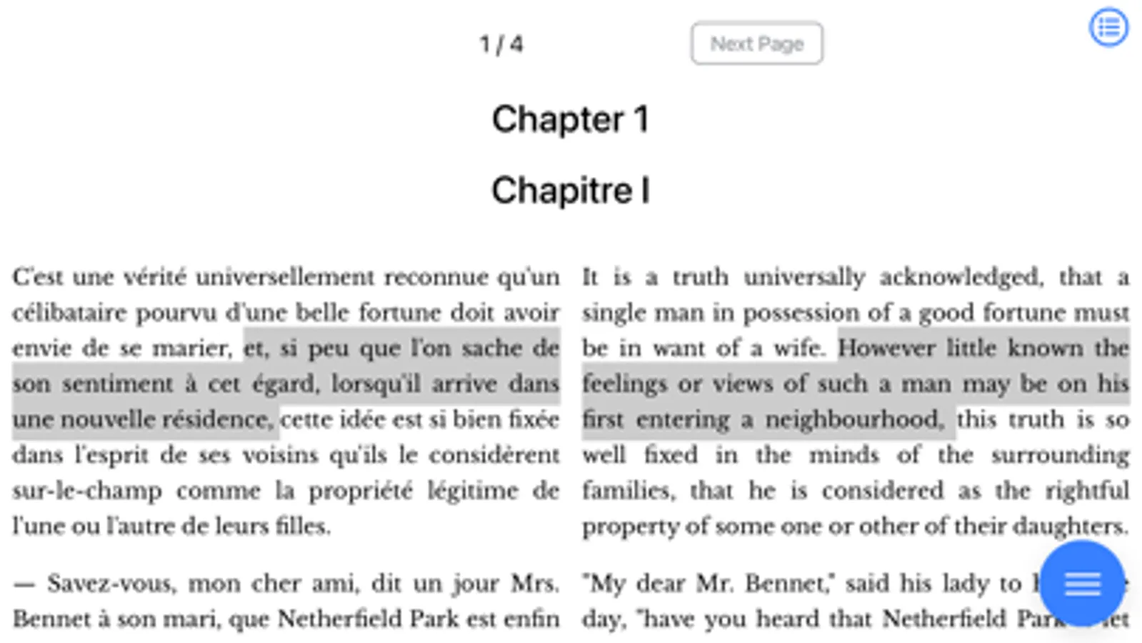 Duoreader makes it easy to read bilingual texts by matching the translations sentence-by-sentence. Quickly go between the texts in two languages as you advance your language mastery.