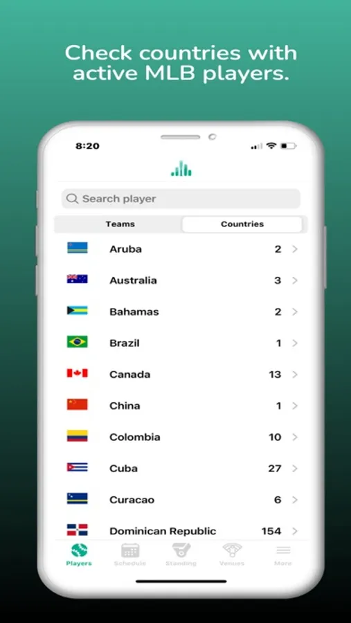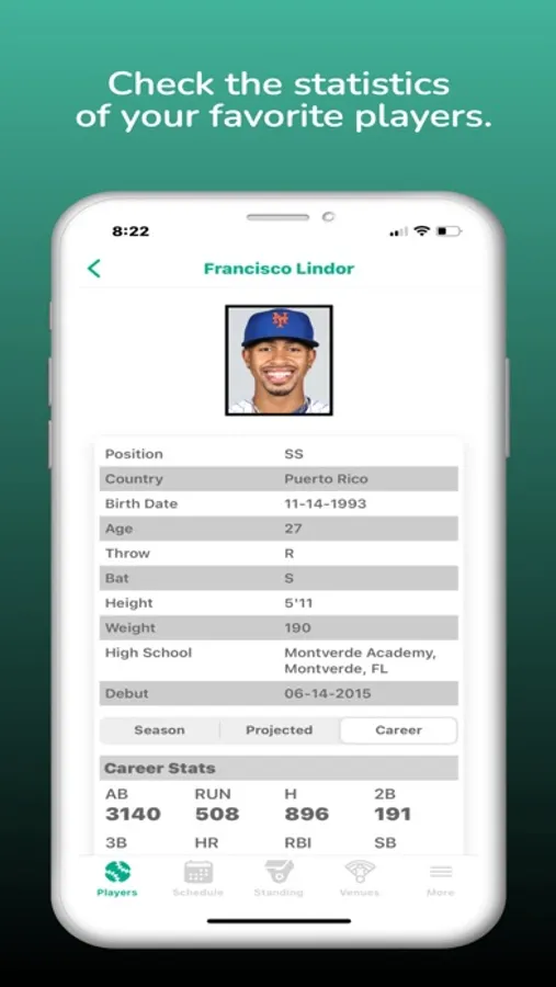 Big Leaguers Stats es una aplicación donde encontrarás las últimas estadísticas de los peloteros los cuales podrás buscarlos por equipos, país y nombre. Encontrarás la sección de Schedule donde estarán los juegos del día, Standings para ver las posiciones de los equipos, una sección de Venues para ver los nombres de los estadios y GamePace para ver las estadísticas del juego .