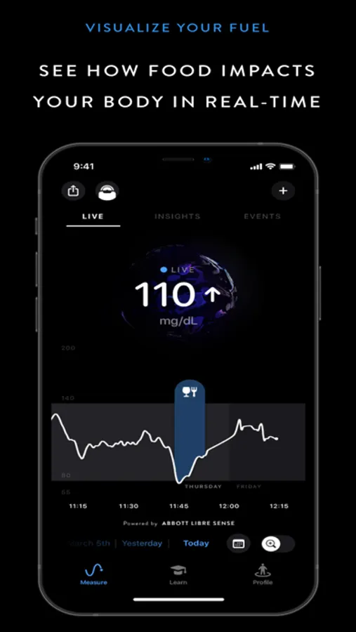 Visualize your glucose levels with the Live Graph and Trend Arrow. See how food impacts your body in real-time. Discover which foods provide stable & sustainable energy.
