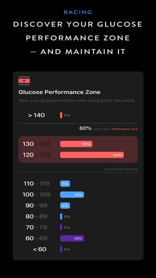 Determine your Glucose Performance Zone—maintain it in competition to sustain peak performance.