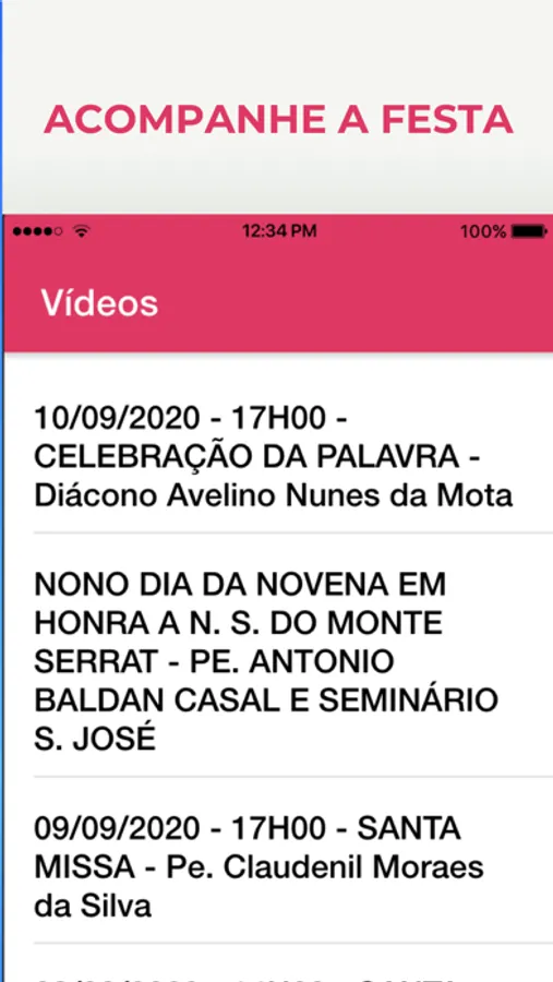 Acompanhe as missas, e veja os outros materiais, como cânticos e novenas. Alem da lista de eventos da festa do ano de 2020