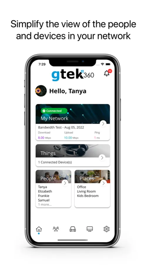 Gtek 360 Managed WiFi provides subscribers with the tools to secure and take control of their home Wi-Fi network. Protect your home with app features like network security, password and SSID management. Take control with app features such as parental controls, device management, view connected devices, and perform bandwidth speed tests.