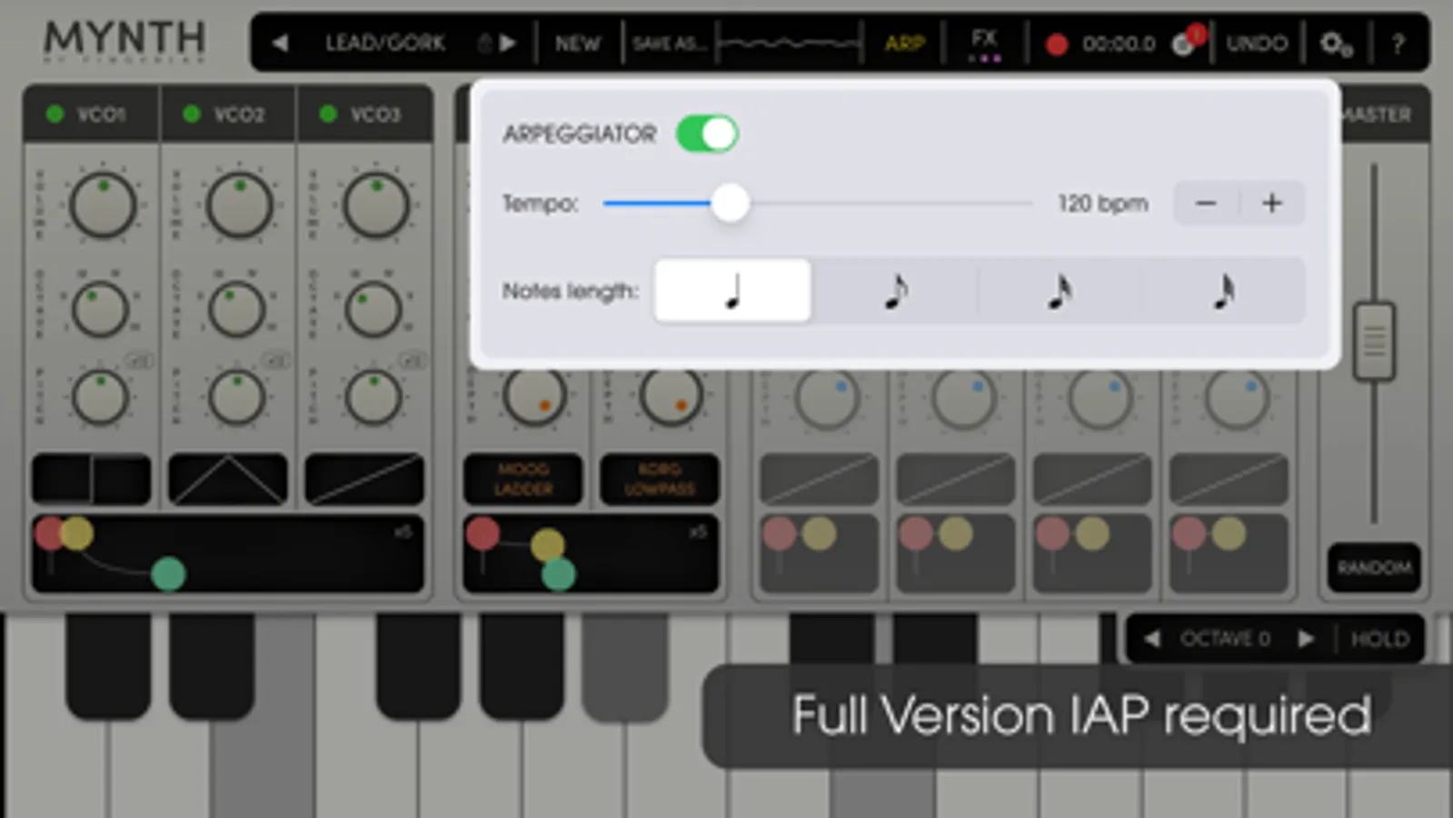 Finally, turn on the Arpeggiator, add some FXs, and your are ready to record a track using the build-in live recording module.