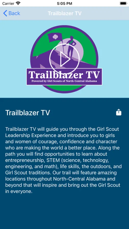 Trailblazer TV will guide you through the Girl Scout Leadership Experience and introduce you to girls and women of courage, confidence and character who are making the world a better place. Along the path you will find opportunities to learn about entrepreneurship, STEM (science, technology, engineering, and math), life skills, the outdoors, and Girl Scout traditions. Our trail will feature amazing locations throughout North-Central Alabama and beyond that will inspire and bring out the Girl Scout in everyone.